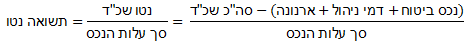 - תשואה נטו – מכיוון שזה הפרמטר החשוב באמת (“עם זה קונים במכולת” כמו שאומר הפתגם…) הוא המדד שהכי חשוב לבחון כיצד הוא חושב. מקובל לחשב תשואה נטו כך: